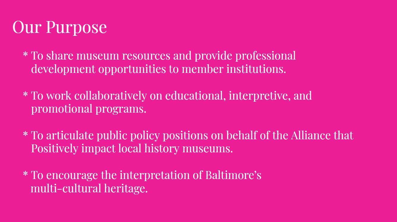 * To encourage the interpretation of Baltimore’s multi-cultural heritage.